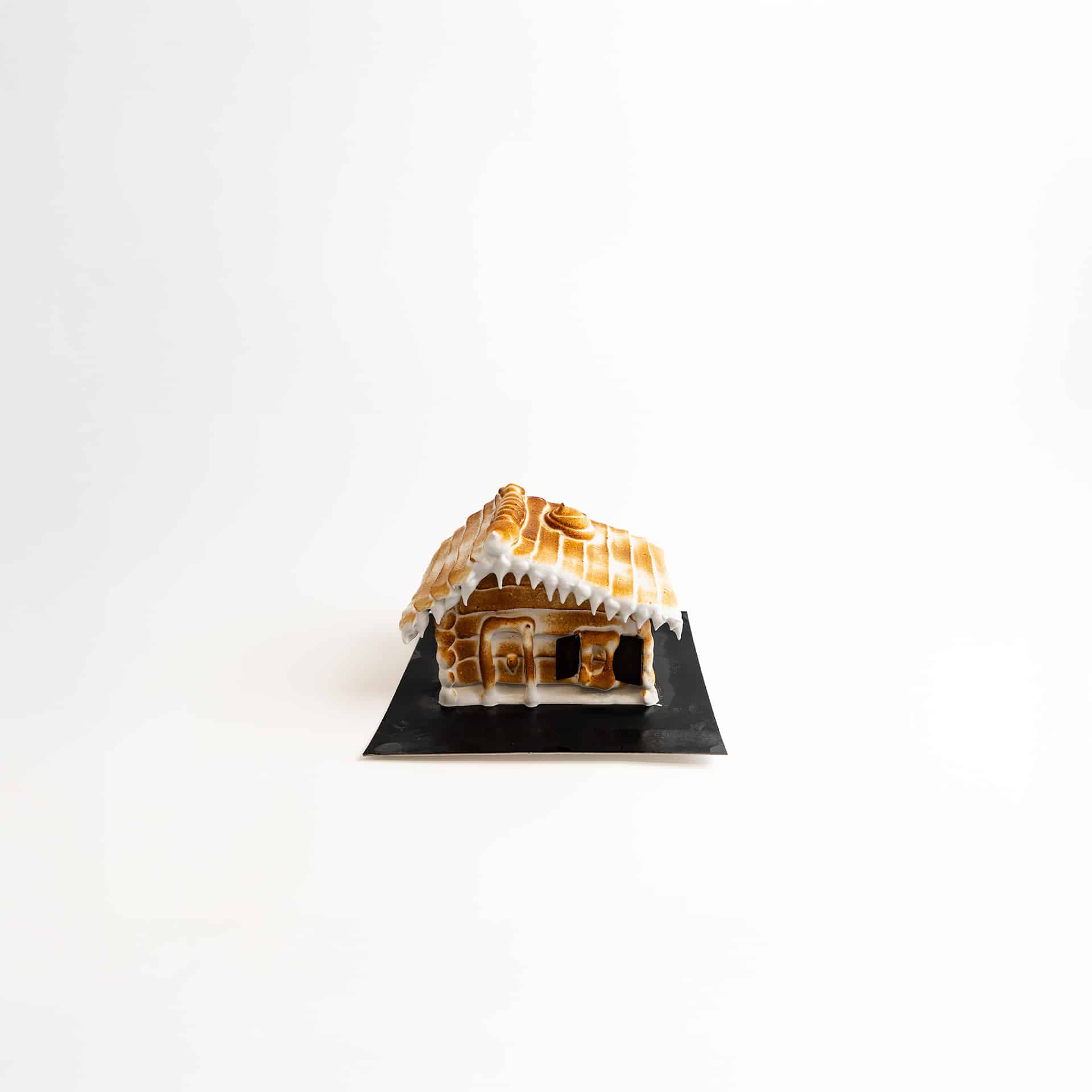 De ijstaart ‘Chalet’ brengt winterse charme naar elke feesttafel. Met zijn zorgvuldig gevormde structuur — van het rustieke dak tot de speels aangebrachte ‘houtblokken’ — lijkt deze creatie zo uit een bergdorp geplukt. De lichte, gouden branding van de buitenlaag geeft het geheel een warme, ambachtelijke uitstraling, terwijl de glanzende witte afwerking doet denken aan vers gevallen sneeuw die zachtjes op het chalet neerdwarrelt.